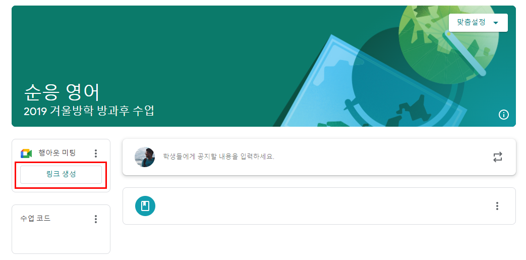 - 핵심: 구글 클래스룸 첫화면에서 '링크생성'을 누른 사람이 바로 주최자입니다.